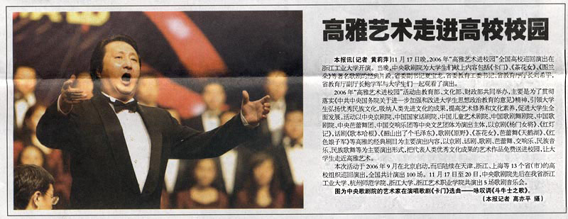 教育信息报讯:高雅艺术走进高校校园