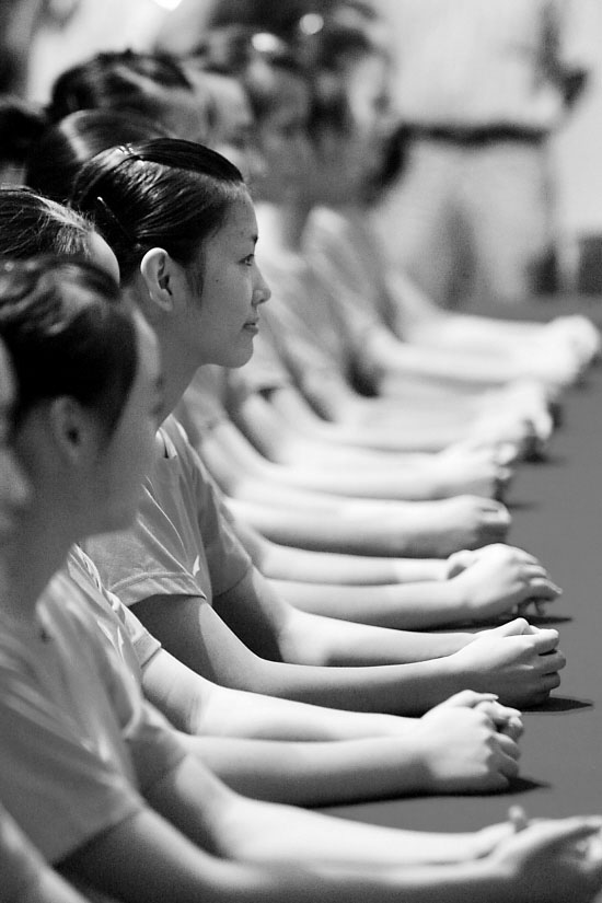 为了让学员在开班典礼上“焕然一新”,陈伊娜与“小百花”班的几位老师,对姑娘们进行了礼节与仪态的集训。