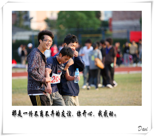 第一次参加浙艺运动会的我,就被现场无处不在的温暖所感动。运动场上奋力拼搏的精神,场外声声饱含激情的呐喊,一次仓扶,一个眼神,一句问候……除了给人无限力量,还能让人心底热浪翻滚。这便是感动吧。平凡日子里小小的关怀与祝福,哪怕只是他人的举手之劳,也能让我们心生温暖。