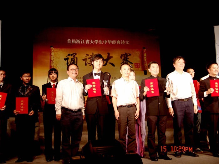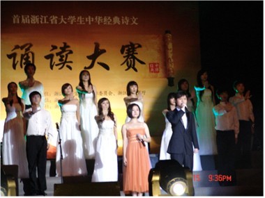浙江省推广普通话形象大使比赛暨大学生中华经典诗文诵读大赛活动捷报频传,我院届届摘金夺银。今年的经典诗文诵读大赛我们更是实现了历史性的突破,三位选手分别荣获金奖、三等奖、优胜奖,夏炜圯同学还作为浙江省大学生代表被选送至教育部参加全国经典诗文诵读大赛。
