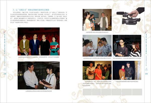 艺术专业学生较多地“重”专业“轻”文化,记者团的建立弥补了艺术高职院校人文内涵的不足,既发挥了文化管理系等非表演专业学生的文学特长,又发掘了表演系中热爱新闻文学的同学的兴趣特长。在记者团里,学生记者通过新闻培训、文学交流、采访实践,接触名家,撰写新闻,锻炼自我,提高文字写作能力,提升新闻文学素养,陶冶人文情怀。