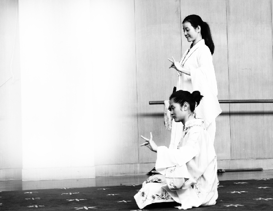 七月流火,尽管开了空调,但一场练下来,姑娘们不停地摇着手上的折扇,满脸都是汗珠子。