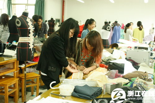 这是浙艺院美术系服装专业第一届创意与技能教学实践,展出作品共有26件,创意云集、亮点纷呈。11服装班和12服装班全体学生共52名学生参加,以两人为一个小组,在限定时间内使用非辅用材料设计制作一件服装单品。这不仅是对同学们专业知识的考核,更是对团队协作能力的测试。