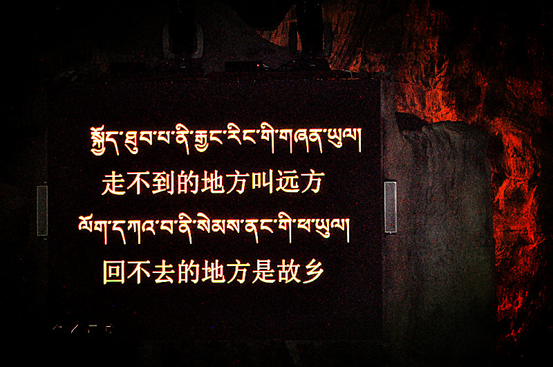 “明亮的月光,照在荒漠高原。河流傍着山,思念化成泪。山的另一旁,悠悠梵音唱。布达拉宫,穿越来世的情感。浩荡的车帐,正给谁做嫁妆。”