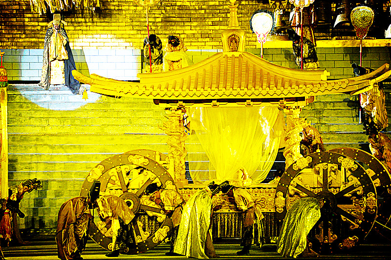 演出现场以自然山水实体为背景,配合高科技的舞美效果,将音乐、戏剧、舞蹈等元素融为一炉,演绎出文成公主万里跋涉、历经艰辛而无悔的进藏和亲历程,引人入胜,回味无穷。