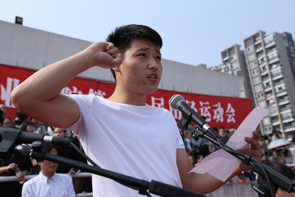 党委书记林国荣致开幕词。他首先向参加运动会的全体工作人员和各部门师生致以诚挚的问候和祝愿。他表示,本届运动会是学院发展体育运动,充分展示师生健康向上、团结进取精神风貌,进一步加强校风学风建设,丰富校园精神文明的又一次盛会。相信这次盛会必将进一步地推动学院体育工作乃至全院各项事业的蓬勃发展。裁判代表和运动员代表也相继宣誓,表达公平裁判、积极参赛的决心和信心。