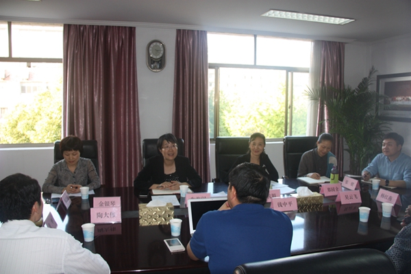 参观结束后,在行政楼三楼会议室举行了交流座谈会。朱海闵、院党委副书记黄杭娟及相关部门负责人参加了会议。会上,朱海闵代表学院对常州信息职业技术学院领导和同仁的到来表示热烈欢迎,向各位来宾简要介绍了我院的历史沿革、办学特色和发展现状,并希望双方能够加强交流与合作,优势互补,共同提高。邓志良对我院的热情接待表示感谢,表明了此次考察交流的目的,对我院在科研创新、专业建设、人才培养等方面取得的成绩表示钦佩与赞许。黄杭娟就我院继续教育工作经验、校园文化建设、综合展演季、高雅艺术进校园等向来宾作了介绍。