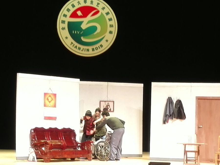 由戏剧系副教授那刚编剧,姚红、那刚指导的小品《和你在一起》是一部获奖诸多的作品,曾荣获2014浙江省大学生艺术节一等奖。此次为代表浙江赴津比赛,参与表演的12影视表演班同学大年初四便回校备赛。学院领导亲自安排诸多参赛细节问题,在系主任支涛带领下,戏剧系参赛师生赴津参赛。由于是客场比赛,北方寒冷气温让南方学生颇感不适,住宿的大学校园里因恰逢寒假缺乏必要的配套服务,这些都考验着师生们。困难最终都化作前进动力,同学们不负众望,凭借一部主打亲情牌的催泪小品《和你在一起》,荣获艺术表演类戏剧乙组(专业组)一等奖,这也是戏剧系继第三届全国大学生艺术展演后再度获得一等奖。