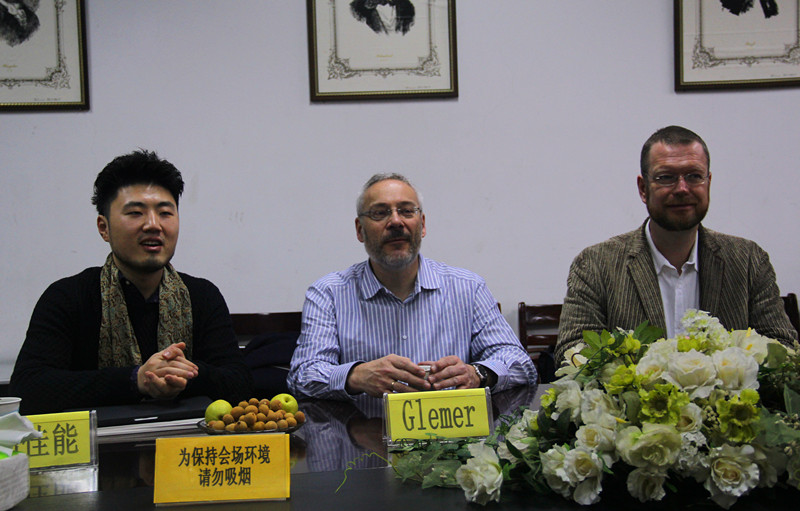 章轲简要介绍学院办学基本情况、办学特色,就音乐专业建设、音乐表演展开交流。Glemser教授和Hollop歌唱家分别讲述各自的艺术生涯、演出经历。