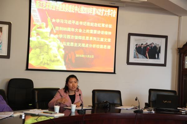 会上,戏剧系、文化管理系、基础教学部负责人和思政教研室教师代表分别就两项学习主题进行了交流发言。