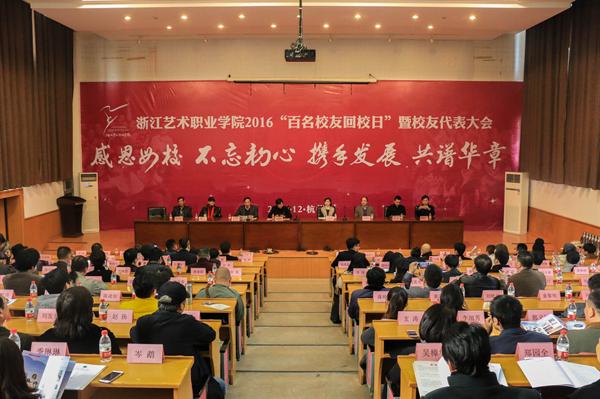 金建、魏忠仁作为校友代表发言。金建说,“是浙艺培养了我,也培养了我坚定的性格。虽然我不一定从事所学的专业,但是却始终会做一个为母校添砖加瓦的人。”魏忠仁也表示,“毕业三十年,我一直都没有忘记,是母校给了我温暖,教给了我知识。母校样貌变了,但我们对她的思念不变;母校的地址变了,但我们对她的祝福不变。”