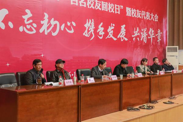 朱学富作为学院教师代表发言。他说,其实我也是一位老校友,1971年进校,1975年毕业留校任教,在学校一共待了46年。我和在座的校友一样,对学校的感情非常深。前段时间参加了两个同学会,大家在一起说起母校都非常有感情,念念不忘母校的培育之恩。我作为学校的老教师和老校友,请校友们与母校保持联系沟通,多分享自己的成功经验、创业创作经历、人生感悟等,大家共同进步;也请校友们对在校的师弟师妹多多关心支持;为学校的发展建设共同作出努力。