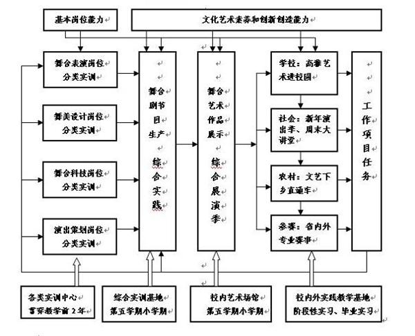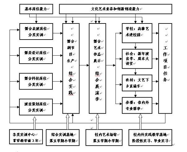 该项目的基本内容为:建立以艺术实践为主线,以剧目为载体的综合实践教学体系;营造以综合性实践基地为保障的真实艺术职业环境;促进综合素质和职业能力并重的人才培养质量提升;推行毕业“综合展演季”,强化学校服务社会的文化职能。它衍生出一批综合实践教学改革和创新的教科研成果、建构起学院精神和文化品格的校园文化新载体以及搭建国内外艺术教育和艺术活动交流平台的成效,具有突破表演与非表演两大专业壁垒、营造艺术生产真实的职业环境、实现实践教学与职业素质涵育相融合的创新点。