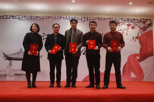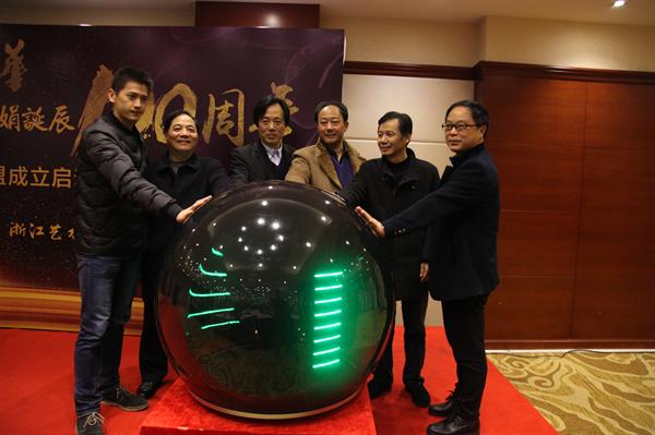刁玉泉、朱海闵、陶铁斧为浙江戏曲产教联盟成员单位赠送了《姚水娟越剧艺术文选汇编》。浙艺副院长沈恒、嵊州越剧艺术学校校长钱江南、浙江越剧团团长陶铁斧、浙江昆剧团团长周鸣岐、浙江小百花越剧团副团长刘建宽、杭州红星剧院总经理戴志清等为浙江戏曲产教联盟按下启动按钮,标志着联盟的正式成立。