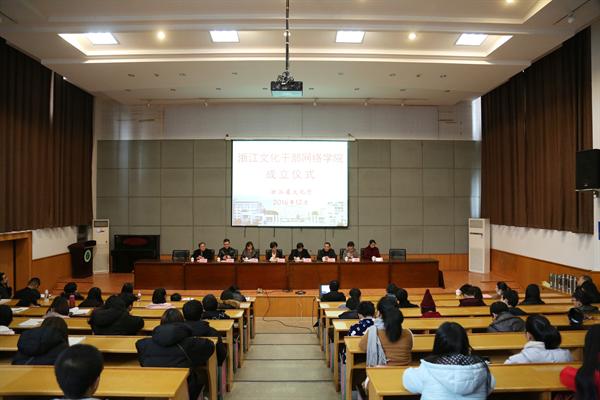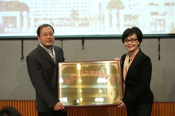 浙江省人力社保厅专业技术人员管理处副处长张建林、浙江省人事培训教育中心副主任吴张顺、浙江省文化厅人事处调研员倪赛英、浙江图书馆副馆长刘晓清、浙江省人事培训教育中心继续教育部部长谢吟等出席成立仪式,与浙艺师生共同见证了浙江文化干部网络学院的成立。