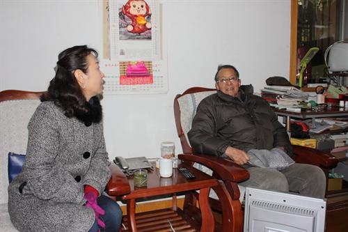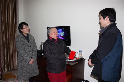 2016年猴年春节即将到来,院党委书记朱海闵、院长张建国、党委副书记黄杭娟、副院长章轲、沈恒、纪委书记夏开堂在组织人事处人员陪同下,走访慰问学院老领导、离休老干部、老高知以及生活困难教职工,代表学院向他们致以节日的问候和诚挚的祝福,祝愿老同志们新春愉快、阖家幸福、健康长寿。