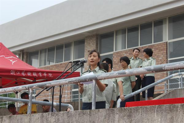 院长黄杭娟作军训动员讲话中说到:“看到一个个富有朝气、充满自信的同学们,我感到由衷的喜悦和欣慰。你们的到来使这原本就生机勃勃的校园平添了更多更新活力。为期12天的军训,是同学们迈入大学生活的第一课。也许你们会遭遇烈日骄阳、瓢泼大雨等许多困难,但希望同学们不要躲避,要迎难而上。通过严格的军训,锻炼身体,磨练意志,训练作风,锻造品格;更好地感悟集体的力量、友情的珍贵;更深地领会严明纪律、规范行为、服从指挥的含义。军训是精彩的,也是艰苦的。希望同学们通过军训将坚强的意志品质和吃苦耐劳精神、优秀的团队精神和集体荣誉感等贯穿到今后的学习生活中,为三年的大学生活打下坚实的基础。”