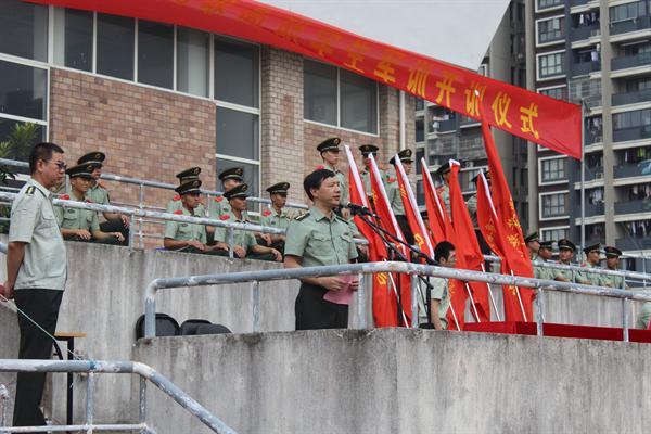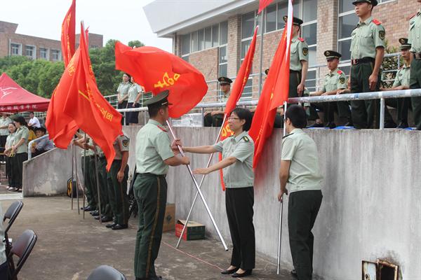 纪委书记夏开堂宣读军训团营以上干部及教官名单。今年军训的教官与往年不同,他们是在刚刚落幕的G20峰会期间担任主会场安保任务的武警杭州支队23中队,该中队刚成立不久,是由各连队中的精英组成。院党委书记朱海闵为6个军训营营长授旗。伴随着雄壮的军乐声,全体参训教官和学生投入到紧张的训练中。新生们穿着整齐的迷彩军装俨然成了校园里一道靓丽的风景线。
