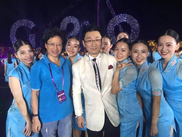 15级编导少儿班的黄丽丽参加了现场演出。她说,6月30日到节目组报到,7月1日马上就在西湖体育馆排练了。那一个月就休息了两天。后来在西湖上现场合节目,导演又修改了无数次。舞蹈动作虽不难,但因为人多,大联排大合成时,300人里只要有一人做错,就得重来,最后呈现的是无数遍磨合的结果。