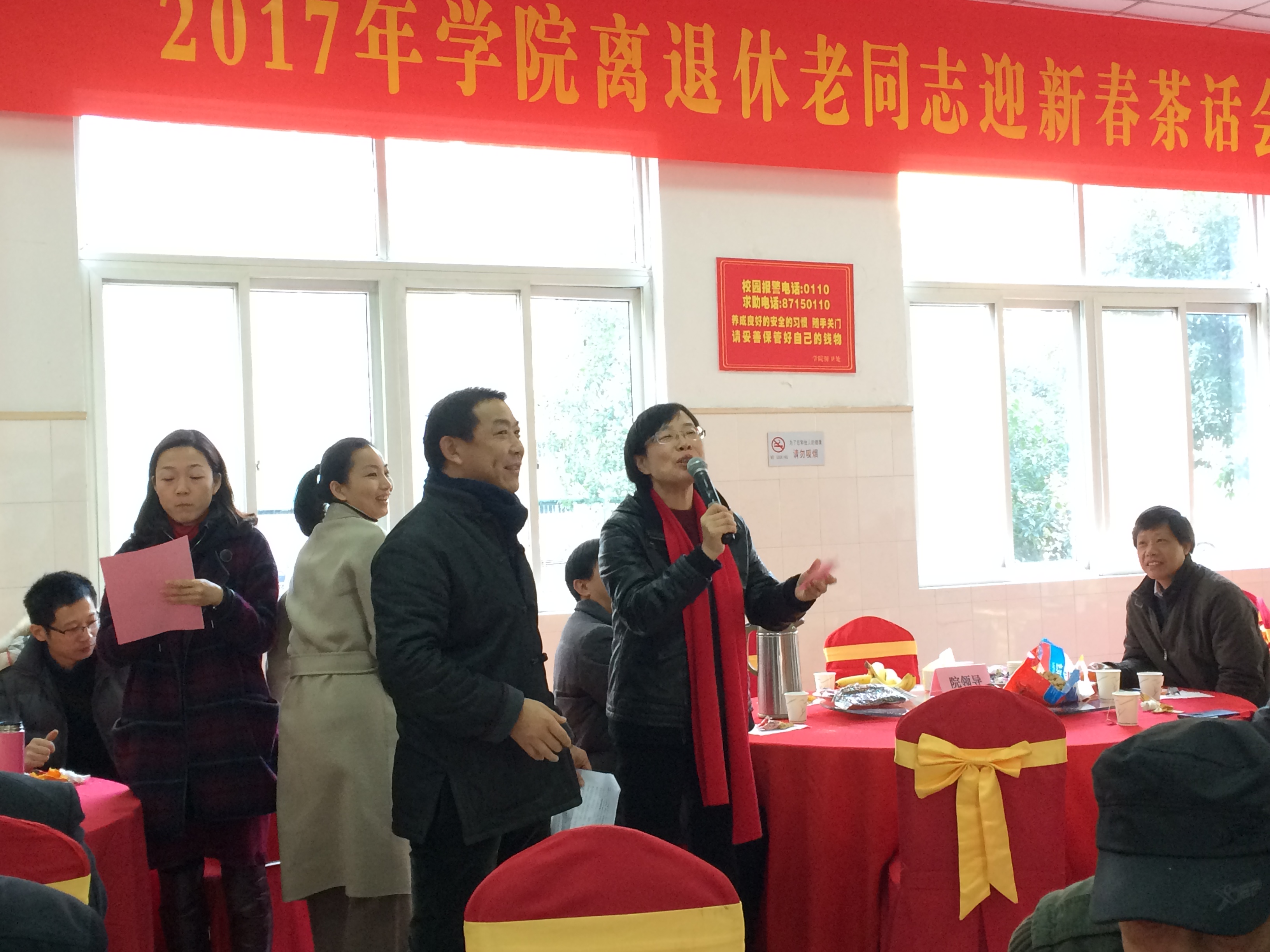 黄杭娟表示,2016年学院在教育教学、科研创作、行政管理等方面取得了显著的成绩,这是学院全体教职员工辛勤努力、开拓进取的结果,是全体离退休老同志的关心、支持、帮助的结果。相信在学院党委的正确领导下,有各位老领导、老同志的大力支持,有学院全体教职员工的共同努力,学院的明天一定会更加美好。