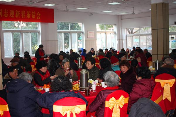 老同志在现场互致新春问候,气氛热烈。茶话会现场还举行了抽奖活动。学院人事处、财务处、医务室等部门工作人员现场办公,为老同志提供“一条龙”报销医药费等服务。会后,部分老同志还参观了赵松庭纪念馆。
