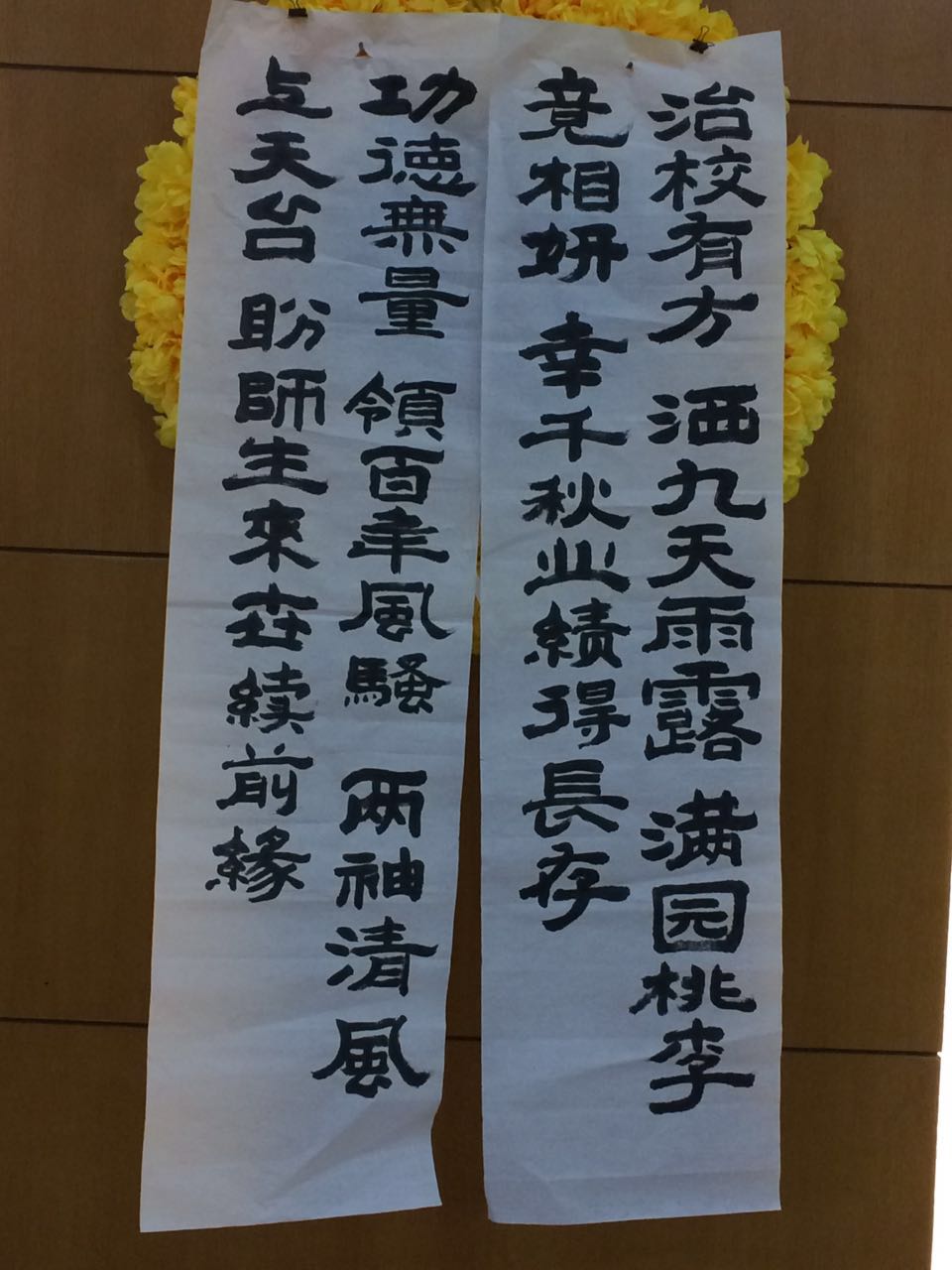 张西华是浙艺主要创建者之一,老校长的离开,多少浙艺人为之不舍、悲痛。“校长仙逝,音同存,容犹在,句句教诲刻骨铭心;学子泣拜,承师育,沐仁爱,点点恩泽受益终身”“治校有方,洒九天雨露,满园桃李竞相妍,幸千秋业绩得长存;功德无量,领百年风骚,两袖清风上天台,盼师生来世续前缘”……在告别仪式现场,浙艺人的一幅幅挽联,字里行间都是对张西华老校长的怀念和告白。
