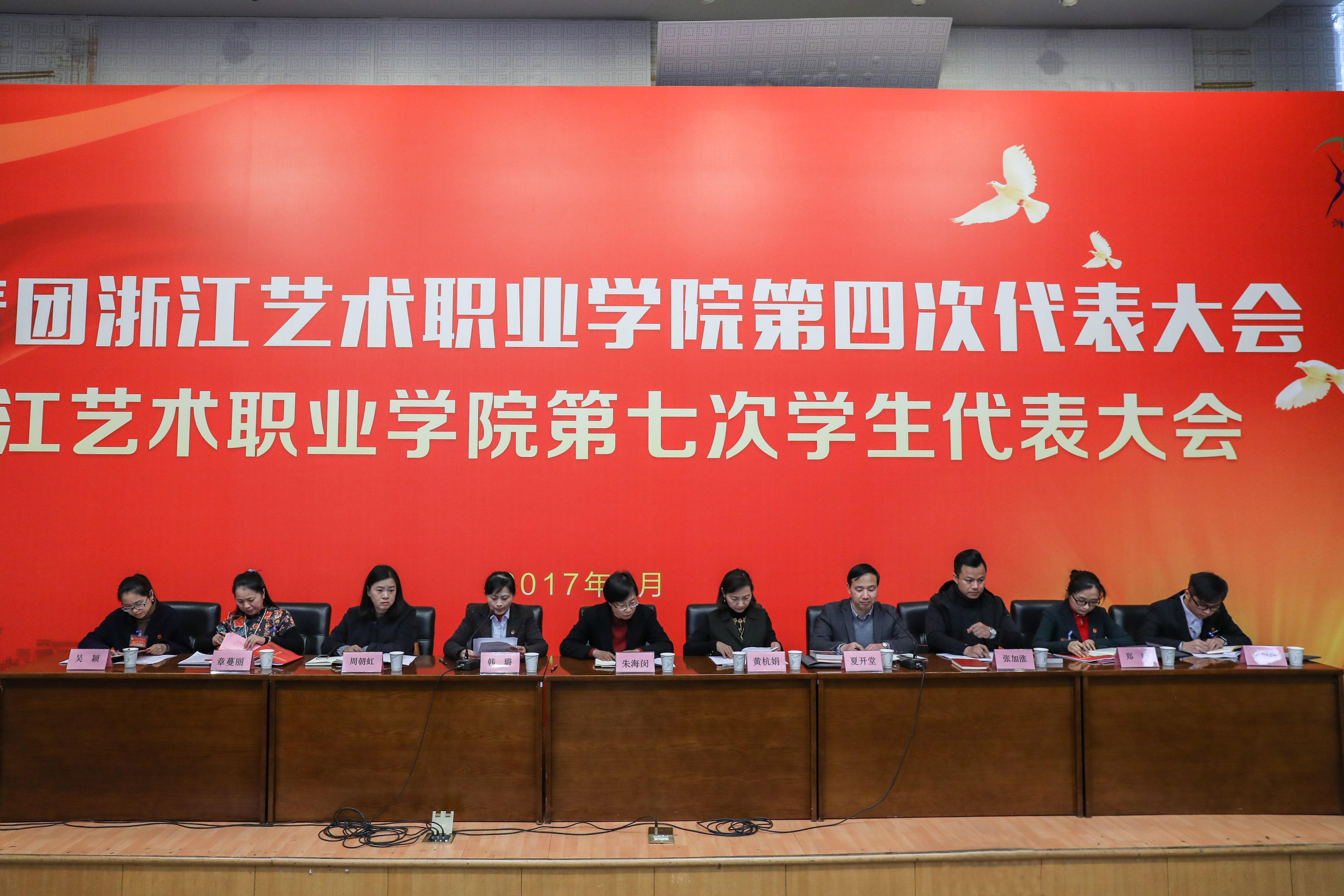 院党委书记朱海闵、院长黄杭娟,院党委委员、副院长夏开堂出席开幕式,省直机关团工委书记韩璐、省文化厅机关团委书记周朝虹与会。浙江建设职业技术学院团委书记、共青团浙江省高职高专联席会主席张加涨及滨江区团区委、浙江中医药大学、杭州医学院、浙江警察学院、浙江机电职业技术学院、浙江商业职业技术学院等兄弟院校团委负责人到会祝贺。学院党委职能部门负责人、教学单位党政负责人应邀列席会议。来自全院7个基层团总支的145名团学代表参加会议。