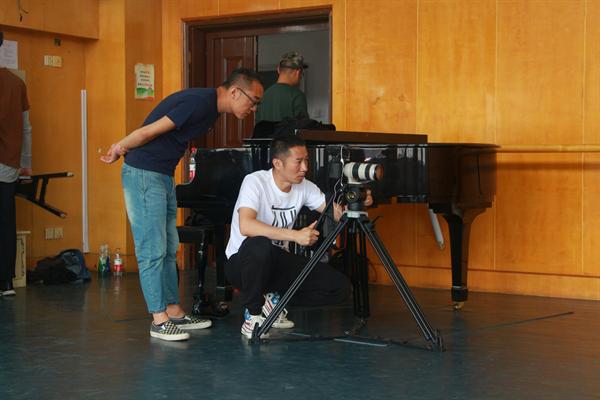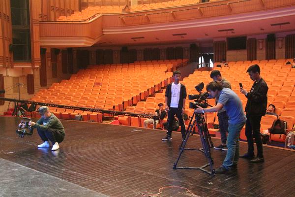 “拍摄计划安排得很紧凑,任务挺重的,如果演员专业性不够,那我们的压力就大了。”来自中国教育电视台《传承的力量》栏目组导演关强紧盯着摄像机监视器接受了我院学生记者的采访,“这次节目的选取面很广,有大中小学,也有专业和业余的差别,《凳之龙》作为专业艺术院校的的优秀作品入选,因为它取材于民间,又糅合了多种艺术形式,艺术感特别强,很符合我们栏目组‘传承’的主题。”在浙艺拍摄舞台作品的效果非常理想,关强盛赞演员们的舞台功底,“我对浙艺的学生印象很好,他们主动配合,才小半天就和我们栏目组的编导们结成了朋友,和他们刚刚接触的时候没有陌生的违和感,这让我们在拍摄上节省了不少精力,特别在动作展示上,真的非常专业,下了不少功夫。”