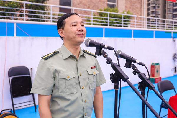 典礼在庄严的升国旗仪式中拉开帷幕。朱海闵作开学典礼暨军训动员讲话,她首先代表浙艺全院师生员工对浙江警察学院的领导及全体教官表示诚挚的感谢,同时对跨入浙艺学习的300多名新同学致以热烈的欢迎和衷心的祝贺。她讲到,同学们所就读的戏剧影视表演、音乐表演和舞蹈表演等专业一直是学校的品牌,是浙江省的重点专业和优势特色专业,戏曲表演(越剧)专业还被文化部、教育部和国家民委评定为首批“全国职业院校民族文化传承与创新示范专业点”,2017年学校成功入选了浙江省优质高等职业院校建设计划。她希望同学们尽快融入浙艺大家庭,以浙艺前辈名师和群星璀璨的优秀毕业生们为榜样,在浙艺开启梦想,在学艺的同时培养自己良好的政治素质、道德品质、法治意识和行为习惯,培育自己积极健康的人格和良好心理品质,热爱党热爱祖国热爱人民,自觉践行社会主义核心价值观,不断增强文化自觉和文化自信,成为一名有家国情怀、社会责任和真才实学的合格人才。朱海闵对新生军训提出了几点要求:尊重教官,严格训练,战胜困难;思想上高度自觉,行动上雷厉风行;要坚决服从管理,自觉锤炼毅力意志,以一名军人的标准严格要求自己;团结协作,互帮互助,以饱满的精神和认真的态度参加军训,取得入学第一课的优异成绩。