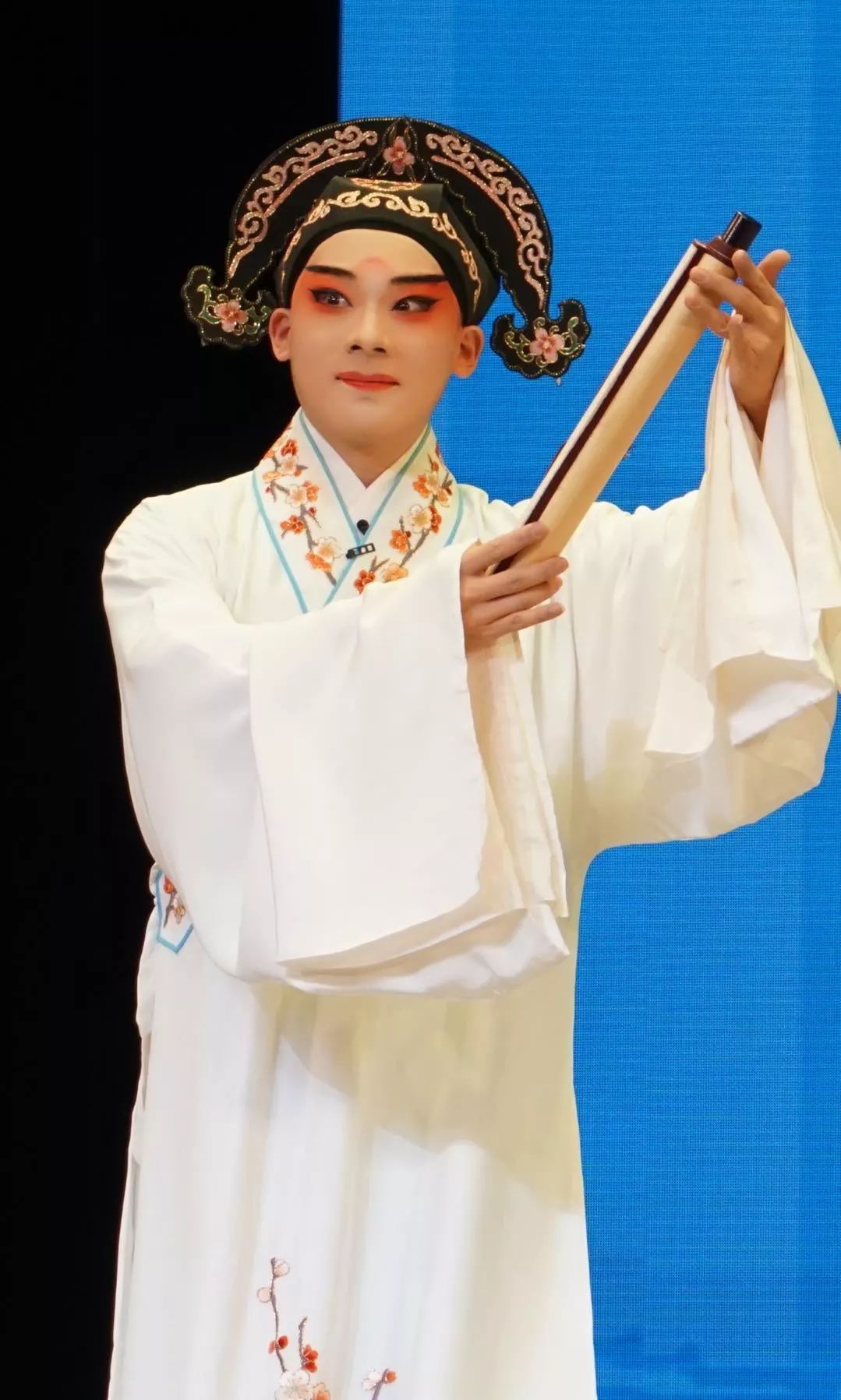《牡丹亭·拾画》是巾生的基础戏,传艺名师是著名昆剧表演艺术家、梅花奖获得者、有“巾生魁首”美誉的汪世瑜。汇报演员是13级小昆班学生席秉琪,他扮相俊美,嗓音透亮,展现一个大病初愈,却充满书卷气的英俊少年。其细腻的身段动作,能看到汪老师的影子。