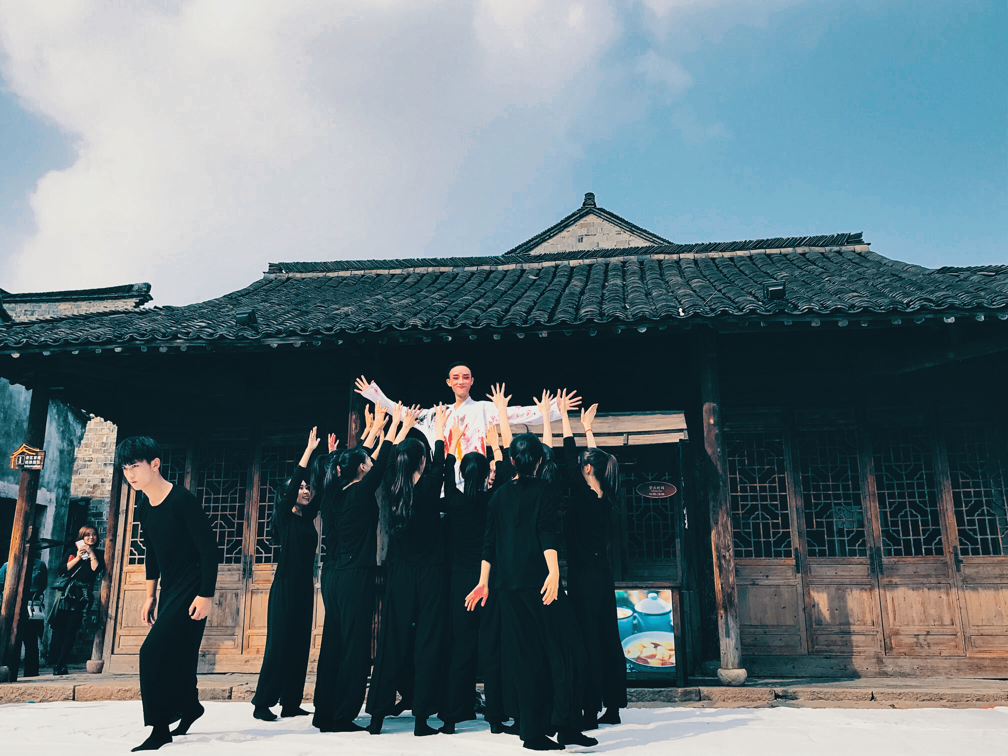 为了本届乌镇戏剧节“古镇嘉年华”的演出,戏剧系17表演艺术班的20位同学从暑假便开始排练,精心筹备了90多天。户外排练是艰苦的,灼灼烈日下,汗水湿透了衣服,同学们的嗓子沙哑了,可他们却说:“为艺术而付出,就像是品一杯茶,苦中有甜,先苦后甜。”