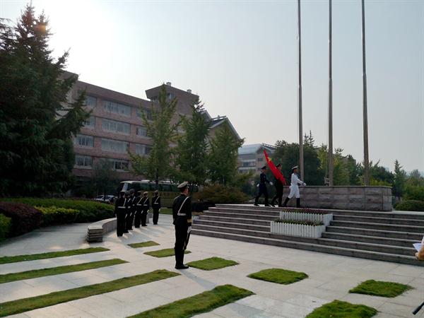影视技术系2017级多媒体班蔡东泽同学是国旗队队长,他向记者分享了国旗队的日常工作,每日早晨八点升旗,晚上五点降旗,各项训练参考军事化标准,比较辛苦,但每位成员都认真对待。本学年,又有一批新同学加入了国旗队,大家都以此为荣。同学们都希望能用这身军装提醒自己,努力做到为国争光。