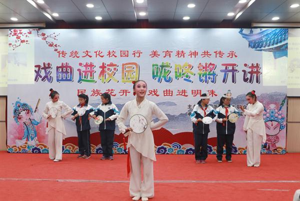 台上是精彩的演出,台下是欢喜雀跃的观众,学起戏曲知识十分积极,有奖竞答的时候同学们都争先恐后举手抢答。主持人问大家想不想上台学一个戏曲动作?想!同学们大喊着脸上洋溢着快乐好奇的笑容。当主持人问到戏曲传递给我们一种怎样的精神时,孩子们纷纷例举《穆桂英挂帅》《花木兰》等曲目来佐证戏曲传承着“爱国”“刚烈”“勇敢”等精神。
