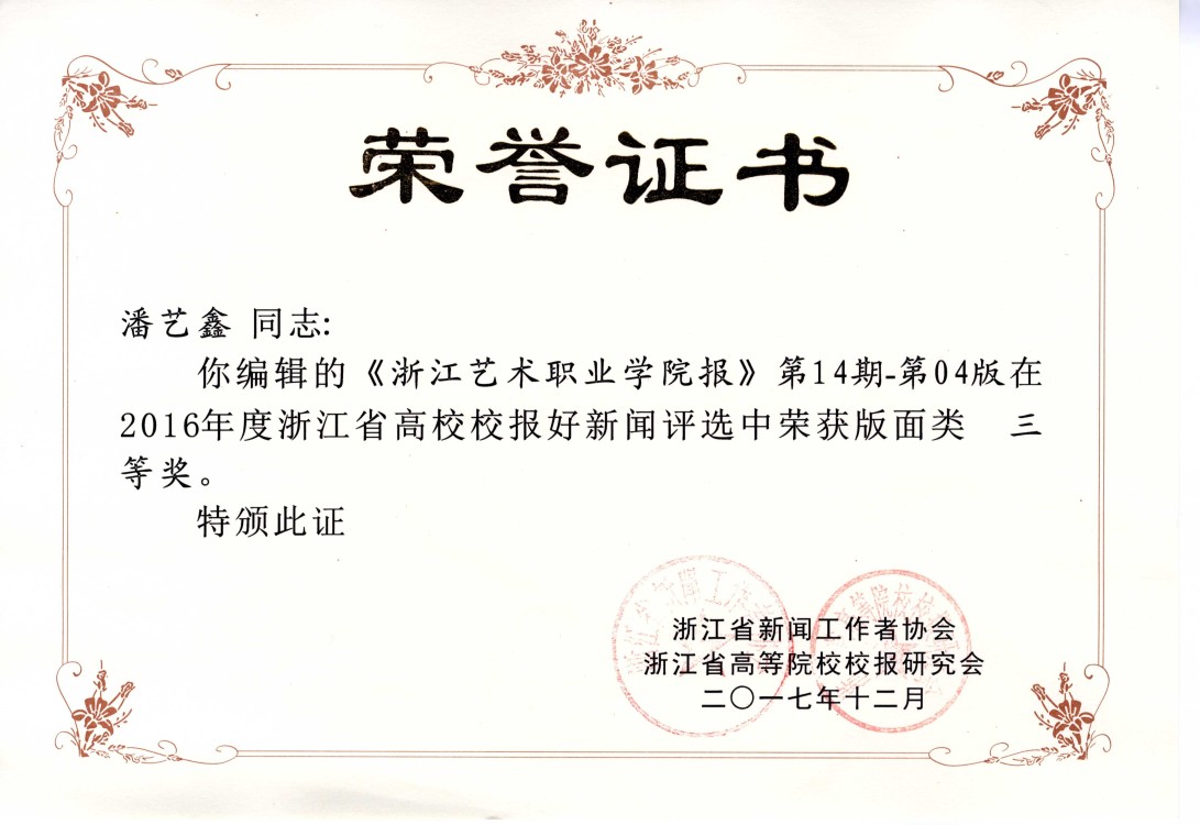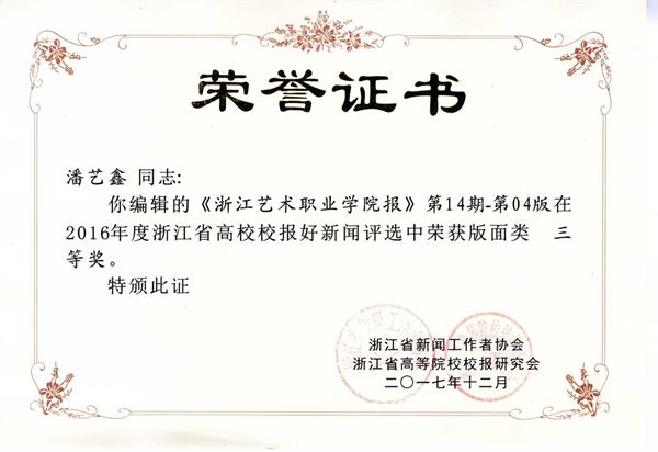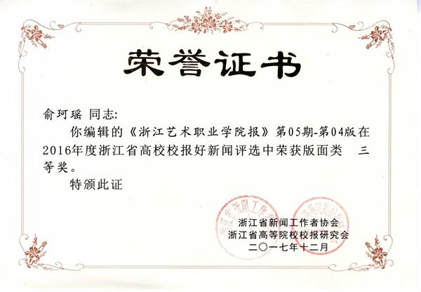 我校在2016年度浙江省高校校报好新闻评选中获得一等奖,实现新突破