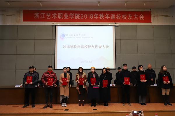 常山县人民政府副县长郑金仙女士,作为学校合作单位代表在大会上致贺辞。校友会副会长、东海电影集团有限公司副总经理俞孟忠,温州校友分会秘书长计卫东作大会发言,他们回忆当年在浙艺度过的美好校园生活,畅谈当下心系母校的情谊,并分享了校友会温州分会的筹建经验。大会宣布了关于聘请18位优秀校友作为学校的创业导师的文件,并颁发了聘书。