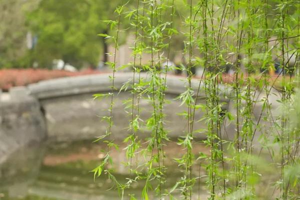 艺池边的柳树点缀了新芽,微风拂过,轻易让你沉溺在这春光里。篮球场边的油菜花是最质朴的景色,悄悄并排开在春的一角,但当你见过成片的油菜花海后,便知道,那小小的金黄色的花瓣,是校园中最撩人的景色。