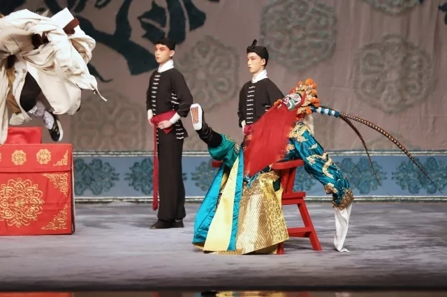 24日是展演的最后一天,安排了一场综合汇报演出,演出节目选自展演中的优秀剧目,浙艺演出昆剧《通天犀》。饰演青面虎的阮登越身着绿蟒、厚底靴、翎子尾,在椅子扶手上金鸡独立,干净稳健作出控腿三起三落时,现场观众沸腾起来,叫好声鼓掌声不绝于耳。这个动作对腿功、椅子功技法要求极高,重在训练学生盘腿、抬腿、踢腿等各种扎实的基本功。展演期间,浙艺院长黄杭娟、文化艺术行指委副主任林国荣、浙艺老领导何志云等前来看望演出师生,给了同学们极大的鼓舞。