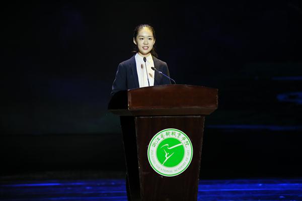戏剧系2018级戏剧影视表演班的邹可然作为新生代表发言,并带领全体新生作“我是浙艺人”宣誓:“今天,我正式成为浙艺人。我将胸怀远大理想,承载浙艺精神,爱国、敬业、诚信、友善,求真、尚美、精艺、修为,坚持文化自信,追求至善至美,立志成为担当民族复兴大任的时代新人。今天,我为浙艺骄傲,明天,浙艺为我骄傲。”
