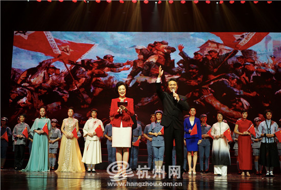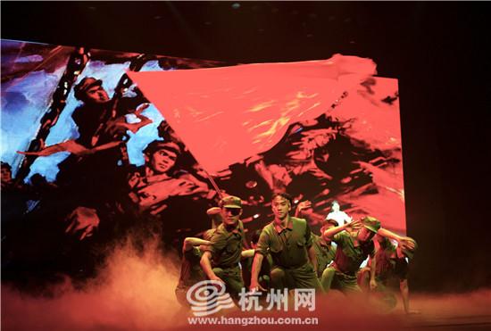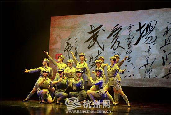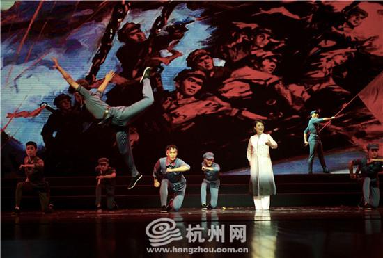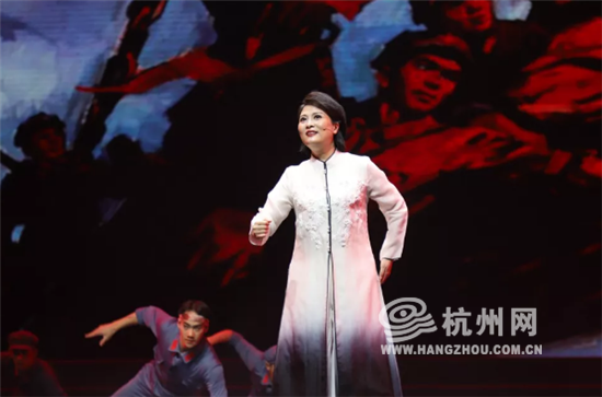 诗歌唱诵《忆秦娥·娄山关》由刘忠虎朗诵、杨晓浤演唱,诵唱出“雄关漫道真如铁,而今迈步从头越”的豪迈气势。越歌《七律·长征》由周伟君和16越剧男班学生表演,唱腔高亢,旋律激昂,气吞山河,充满革命英雄主义气概。