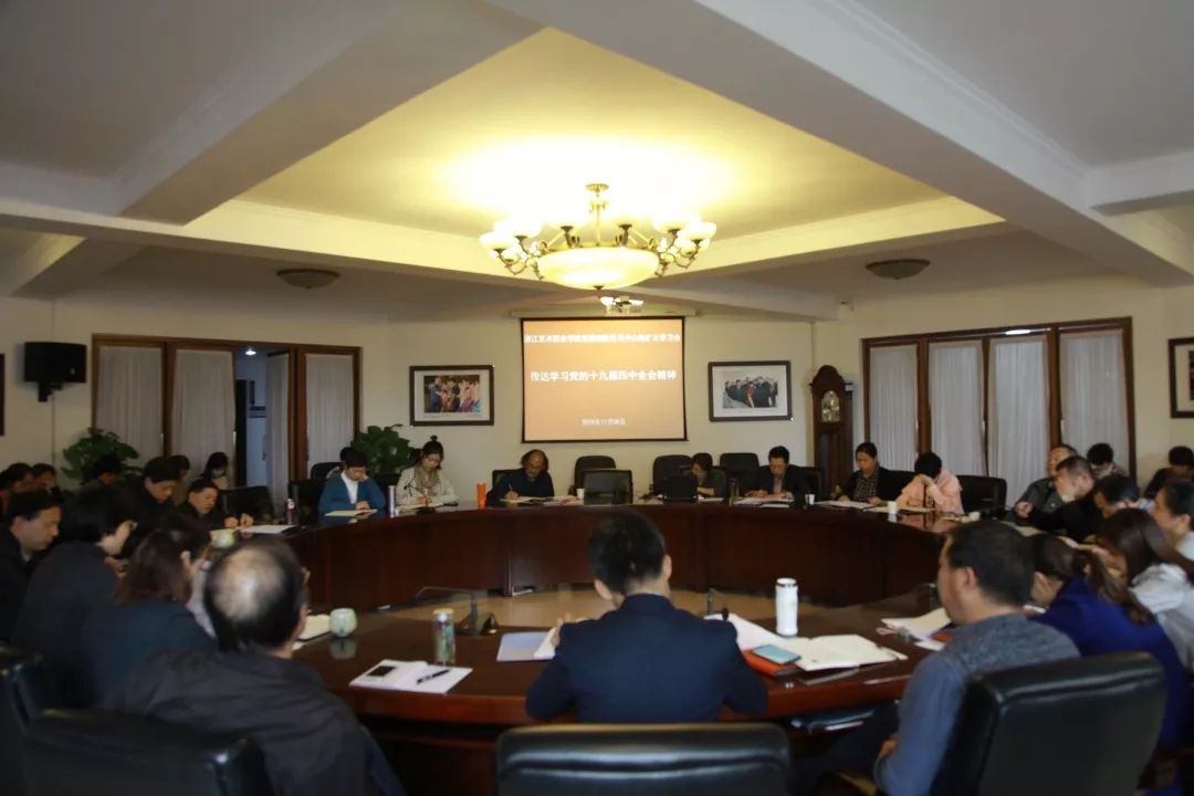 会议强调,学习宣传贯彻党的十九届四中全会精神,是当前和今后一个时期的重要政治任务。全校上下要切实增强政治自觉和思想自觉,把思想和行动统一到全会精神上来。一要把学习全会精神作为党的理论武装工作的重点任务,结合“不忘初心、牢记使命”主题教育,认真组织广大党员干部学习,理论学习中心组作为重点内容,突出抓好领导干部学习。要把学习全会精神作为党校、干部教育培训内容,作为学校思政教育和课堂教学的重要内容。运用好辅导教材和“学习强国”平台。二要对照中央精神和部署要求,把自己摆进去,把工作摆进去,把职责摆进去,守初心、担使命、找差距、抓落实,检视问题,落实整改任务,加快调研成果转化,研究提出在制度建设上固根基、扬优势、补短板、强弱项的实际举措,落实制度,提高执行力。三要结合省委常委扩大会议精神,更好地扛起浙江“三个地”的使命担当, 认真落实浙江省委关于高水平推进省域治理现代化的决策部署,主动融入“大治理”格局,为高水平推进省域治理现代化作出浙艺贡献。四要结合“双高”计划和省级优质校建设的推进落实,做好“十四五”规划的谋篇布局,提高依法治教治校水平,切实提升学校治理能力和水平。不断推进教育教学改革,完善大学治理的行动指南和根本遵循,破除“四唯”体制机制障碍,攻坚克难,破解发展难题。