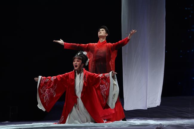 梨园古韵,雏凤新声;弦歌不辍,薪火相继。展现戏曲教学和戏曲形体基本功的《薪火》拉开演出帷幕。演出分上下两个篇章,上篇《春风》是戏剧系教师与在校生同台演绎各剧种经典片段。周伟君的越剧片段《红楼梦•金玉良缘》、俞会珍的越剧片段《碧玉簪•送凤冠》、钱慕俊的京剧片段《白水滩》、吕静的越剧片段《白蛇传•西湖山水》、钱丽文的越剧片段《穆桂英挂帅•辕门外》、郑佳艳的京剧片段《天女散花》、张聿的越剧片段《梁祝•英台悼墓》、王建男的京剧片段《芦花荡》、张志红的昆剧片段《牡丹亭·游园》一一上演。这是一段段演出,也是一个个唱念做打的课堂,这是一对对师生,也是一个个桃李芬芳的世界。