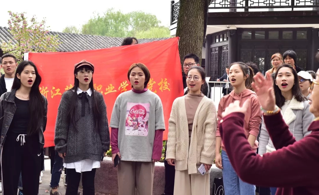 在南湖湖畔,浙艺师生在胡素银指挥下,高唱《我和我的祖国》,是对本次主题活动的艺术表达、情感表达。周围游客纷纷聚拢过来拍摄点赞。学生胡琼茹表示,在歌唱《我和我的祖国》时比以前任何一次都激动,那种氛围和舞台上演唱不一样,大家彼此呼应,发自内心,让人感动。
