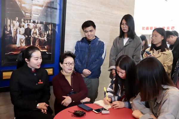 在红船精神展示厅,浙艺师生与张一和她就读浙艺音乐系时的专业老师、原省政协委员、国家一级演员胡素银进行了座谈交流。张一回顾了在学校就读的难忘经历、母校和老师对她的谆谆教导、参加大赛的辛苦磨砺等,令现场师生们深受感动,受益良多。