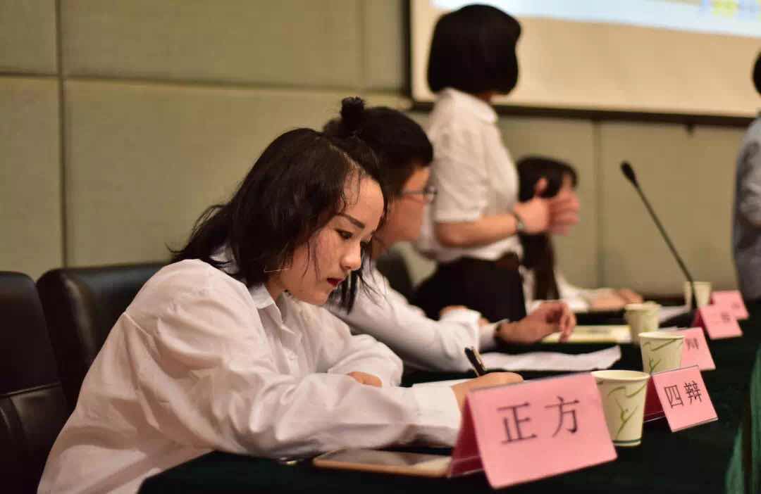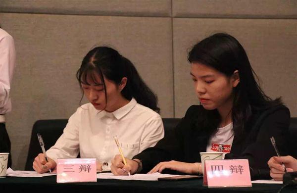在最为激烈的攻辩环节中,正反双方更是争锋相对,针尖对麦芒互不相让,现场的同学和评委老师们也都被紧张的辩论攻势所带动,现场气氛迅速升温。最终,两支队伍以87.9分的相同得分,并列获得此次比赛一等奖,反方三辩倪惠惠同学获得“最佳辩手”称号。