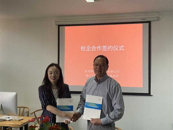 6月14日,可谓是美术系的校企合作日。美术系与杭州群核信息技术有限公司、海宁市赢嘉时尚设计有限公司、杭州舞姿伊贸易有限公司签订了校企合作协议,对应专业包括环境艺术设计与制作专业和服装与服饰设计专业等。