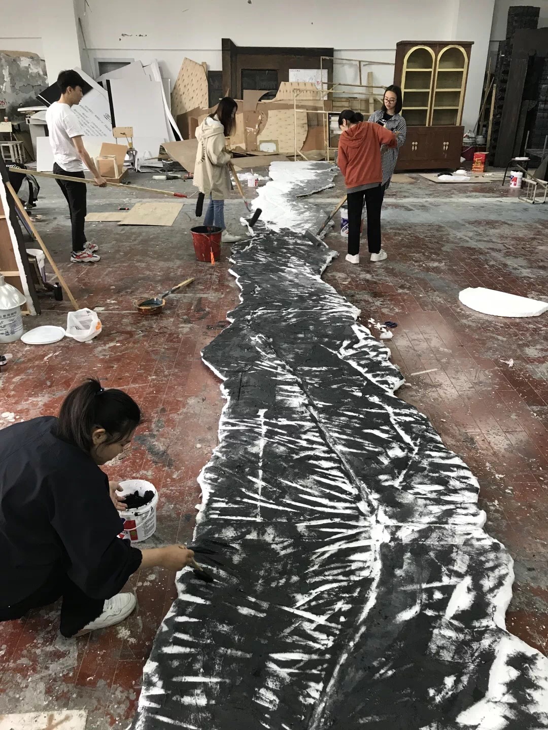 制景阶段,同学们大部分的课外时间都在剧场工作室度过,导演提出修改意见尽量在没进场前先处理。