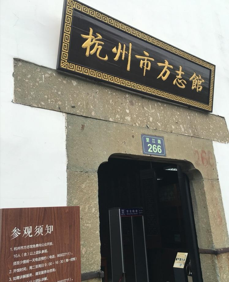 中国共产党杭州历史馆(方志馆)前身分别为杭州市第三批文物保护单位和杭州市第四批历史建筑,其展陈内容以杭州地情为主,分设杭州概览、锦绣江南、政通人和、人杰地灵、文化渊薮、物阜民丰、民俗风情、修治问道等八个展厅,全面系统的记述了杭州自然、政治、经济、社会、文化和社会发展的历史脉络。