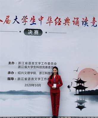近日,浙江省第八届大学生中华经典诵读大赛在绍兴文理学院落下帷幕。浙江省大学生中华经典诵读竞赛是由省语委、省教育厅联合举办的A类学科竞赛项目。该竞赛旨在贯彻落实习近平总书记关于传统文化教育的系列讲话,进一步落实全国和全省高校思想政治工作会议精神,在全省高校中弘扬中华优秀传统文化,培育和践行社会主义核心价值观,提升大学生的汉语口语表达能力,引领大学生阅读中华经典诗文。