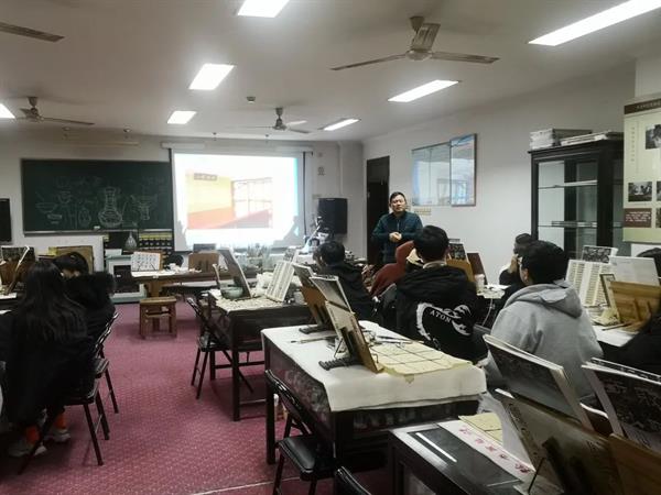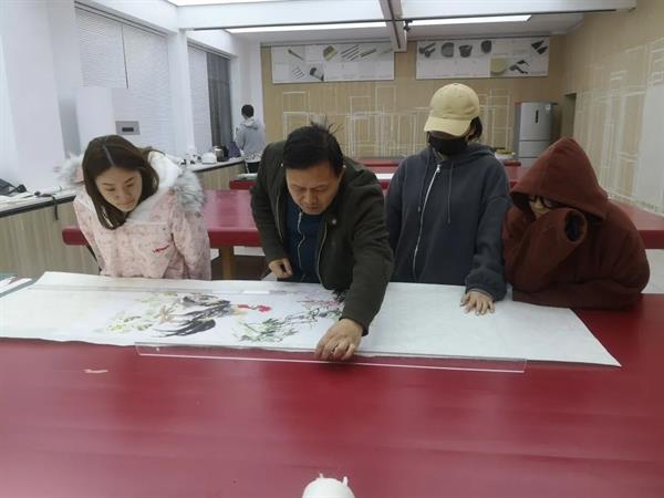 随后,汪自强对18级文物修复与保护学生毕业的装裱作品进行逐一指导,对装裱过程中出现的各种问题进行讲解,对出现的问题给出具体处理意见,同学们都表示获益匪浅。