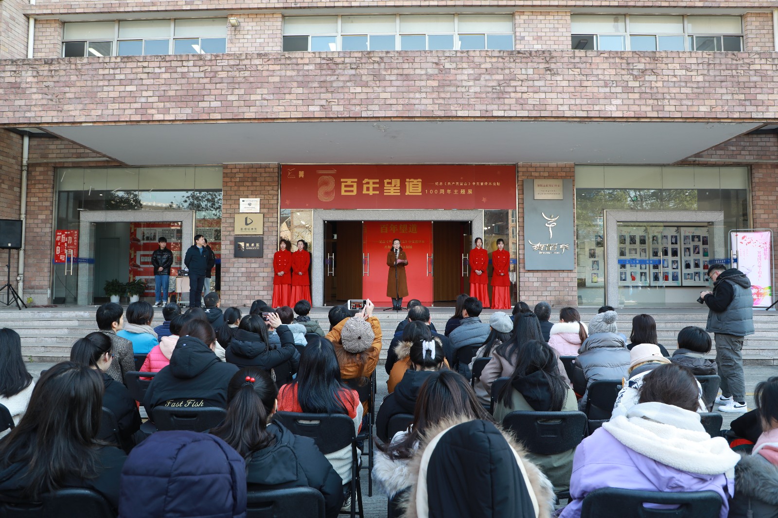 12月16日,“百年望道”——纪念《共产党宣言》中文首译本出版100周年主题展开幕,院长黄杭娟、校党委副书记夏开堂出席,各职能部门负责人、各院系书记和美术系师生代表参加。开幕式由夏开堂主持。